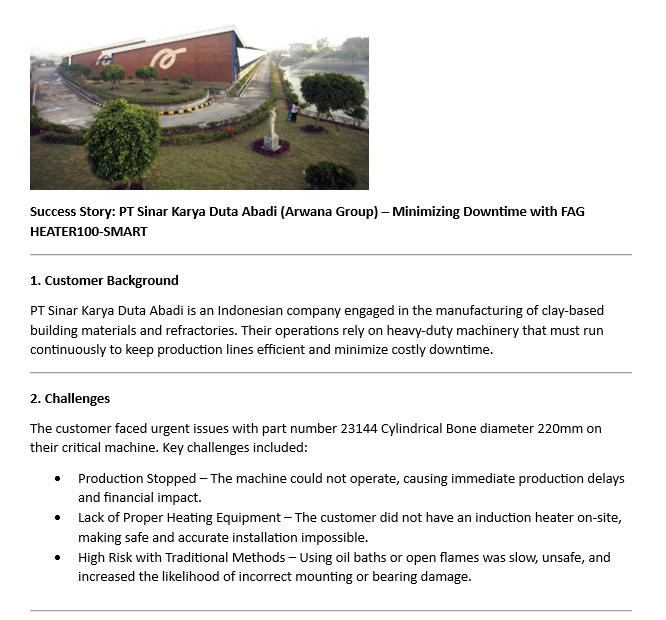 - Success Story: PT Sinar Karya Duta Abadi (Arwana Group) - Minimizing Downtime with FAG HEATER100-SMA