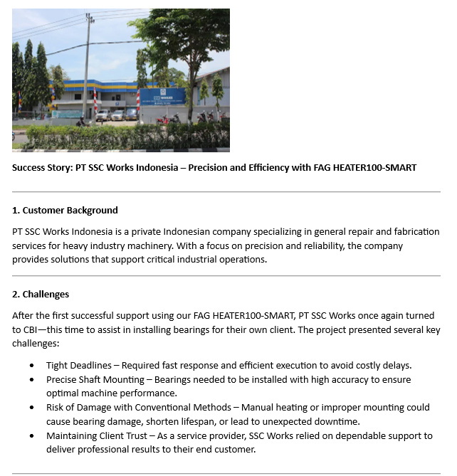 - Success Story: PT SSC Works Indonesia - Precision and Efficiency with FAG HEATER100-SMART