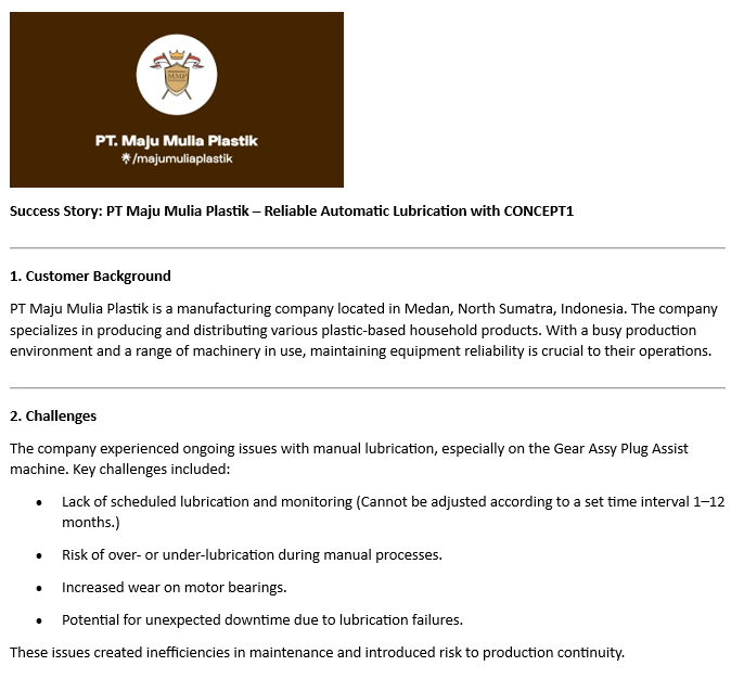 - Success Story: PT Maju Mulia Plastik - Reliable Automatic Lubrication with CONCEPT1