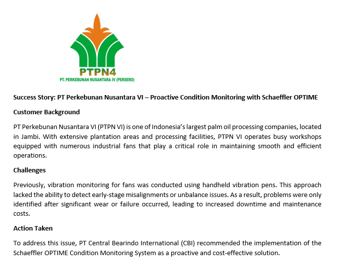 - Success Story: PT Perkebunan Nusantara VI - Proactive Condition Monitoring with Schaeffler OPTIME
