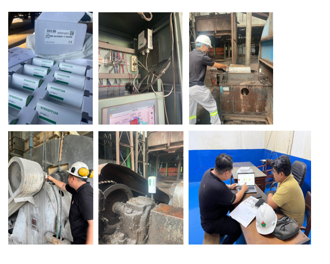 PT Century Bearindo International (CBI) partnered with Schaeffler to introduce the OPTIME Condition Monitoring System at Tjiwi Kimia. CBI began by conducting a comprehensive location survey to identify key machinery that required constant monitoring. Collaborating closely with the Tjiwi Kimia team, CBI facilitated the installation of Schaeffler OPTIME's wireless vibration sensors on rotating equipment, particularly motors susceptible to frequent breakdowns.