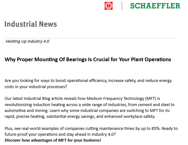 Saat ini unit Induction Heater dari SCHAEFFLER telah di gunakan sebanyak 2 unit di PT BUKAKA TEKNIK UTAMA, dan mereka juga berencana untuk menambah unit Induction Heater SCHAEFFLER seiring perkembangan unit usaha mereka.