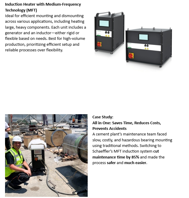 Solusi yang di tawarkan oleh PT CENTRAL BEARINDO INTERNATIONAL adalah menggunakan SCHAEFFLER Induction Heater. Di-tawarkan kedua seri, BASIC HEATER dan SMART HEATER.